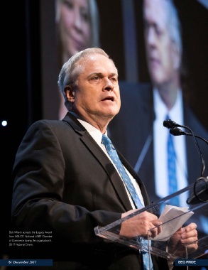 Bob Witeck accepts the Legacy Award from NGLCC: National LGBT Chamber of Commerce during the organization’s 2017 National Dinner . 6 | December 2017 BEQ PRIDE
